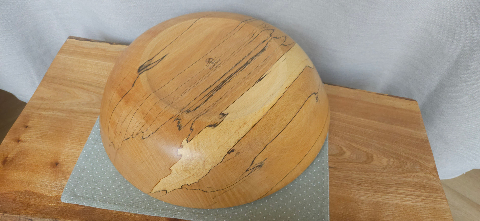 Turned from locally felled spalted beech from the Castlewellan area, this bowl shows the striking dark lines and gentle colour shifts that spalting brings out in the wood. Beech is normally a calm, even‑grained hardwood, but when spalting develops it takes on a far more expressive character. The patterns move through the grain in unpredictable ways, giving each bowl its own natural identity.